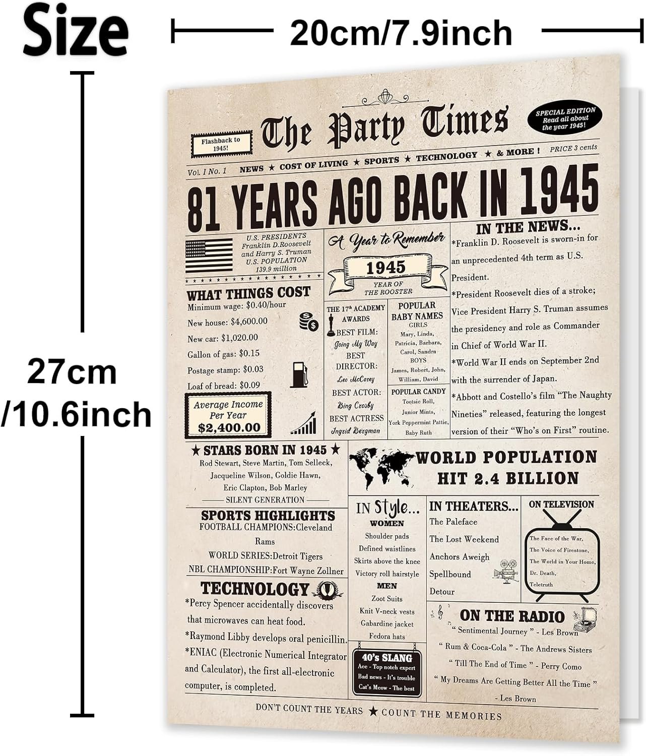 • 【81st Birthday Gifts】It can be used as a birthday card, a poster, a tabletop display, or even a photograph. When receiving the greeting cards, they will feel the love of you
